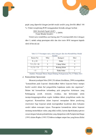 Tabel 2.37 Penetapan rasio, nilai, kategori dan skor Rentabilitas Modal