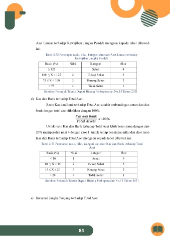 Tabel 2.52 Penetapan rasio, nilai, kategori dan skor Aset Lancar terhadap