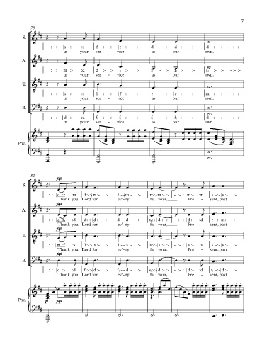 Thank you Lord for ev' ry fa vour, Pre - sent, past