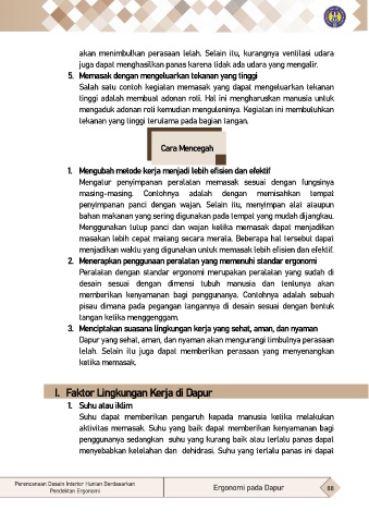 aktivitas memasak. Suhu yang baik dapat memberikan kenyamanan bagi
