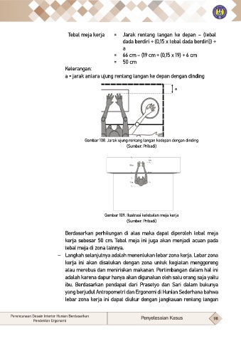 Tebal meja kerja = Jarak rentang tangan ke depan – (tebal