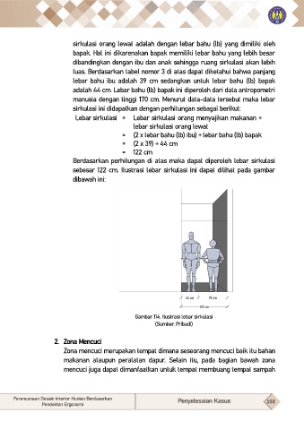 sebesar 122 cm. Ilustrasi lebar sirkulasi ini dapat dilihat pada gambar