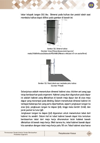 lebar telapak tangan (ltt) ibu. Dimensi pada kulkas dan posisi tubuh saat