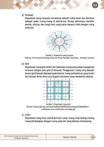 Organisasi ruang grid terdiri dari beberapa ruang yang posisi ruangannya