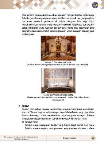 Tekstur berfungsi untuk memberikan perasaan pada ruangan. Tekstur