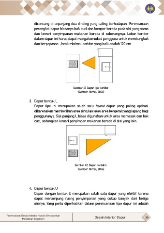 sisinya. Yang perlu diperhatikan dalam perencanaan tipe dapur ini adalah