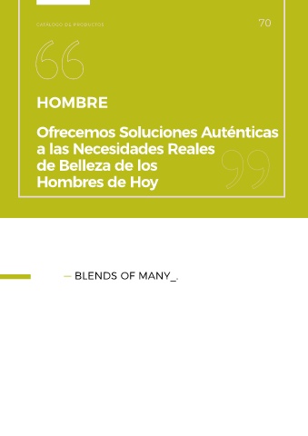 70 CATÁLOGO DE PRODUCTOS HOMBRE Ofrecemos Soluciones Auténticas a las Necesidades Reales de Belleza de los Hombres de Hoy — BLENDS OF MANY_. 71