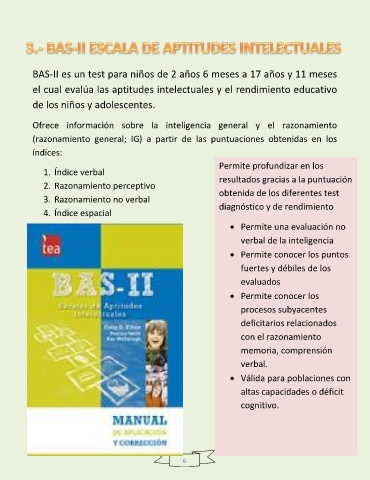 BAS-II es un test para niños de 2 años 6 meses a 17 años y 11 meses