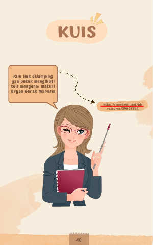KUIS Klik link disamping yaa untuk mengikuti kuis mengenai materi Organ Gerak Manusia https://wordwall.net/id/ resource/34694978 40