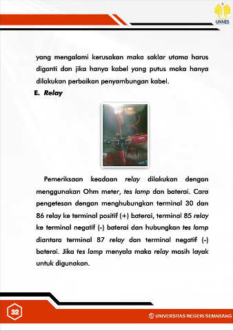ke terminal negatif (-) baterai dan hubungkan tes lamp
