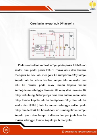 relay dim tertarik ke bawah lalu arus mengalir ke lampu