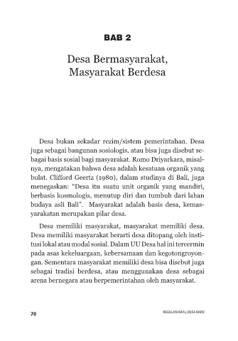 budaya asli Bali”. Masyarakat adalah basis desa, kemas-