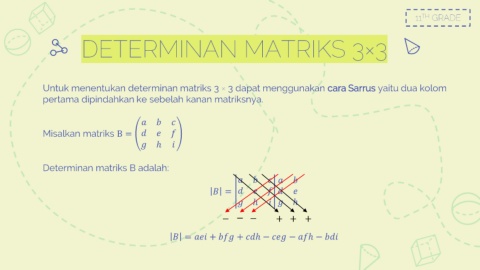 Untuk menentukan determinan matriks 3 × 3 dapat menggunakan cara Sarrus yaitu dua kolom