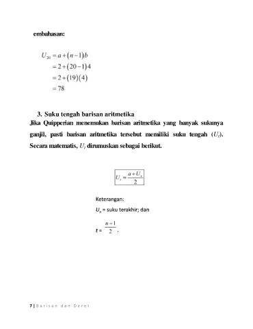 ganjil, pasti barisan aritmetika tersebut memiliki suku tengah (U ).