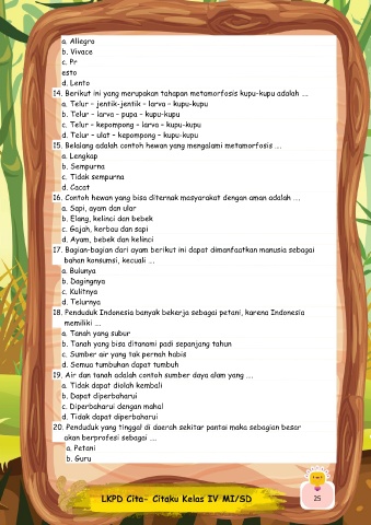 14. Berikut ini yang merupakan tahapan metamorfosis kupu-kupu adalah ….