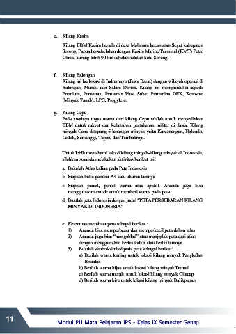 d) Berilah warna biru untuk lokasi kilang minyak Balikpapan