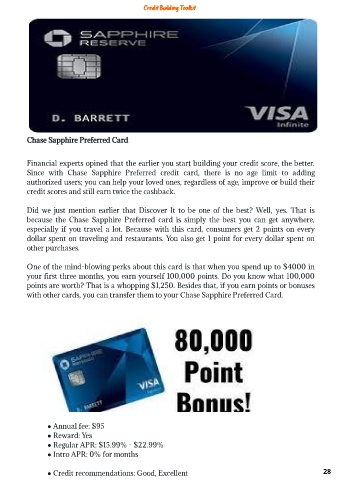 ● Credit recommendations: Good, Excellent 28