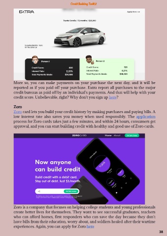 Zoro card lets you build your credit history by making purchases and paying bills. A