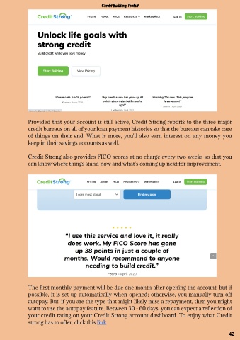 Credit Strong also provides FICO scores at no charge every two weeks so that you