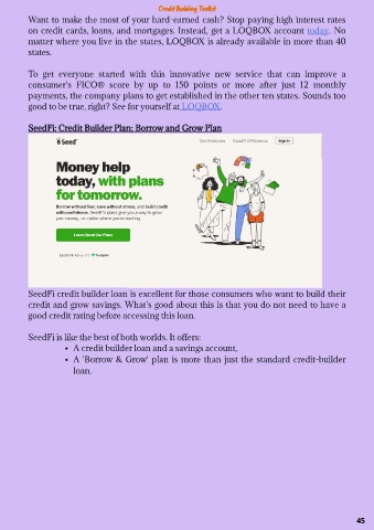 SeedFi: Credit Builder Plan; Borrow and Grow Plan