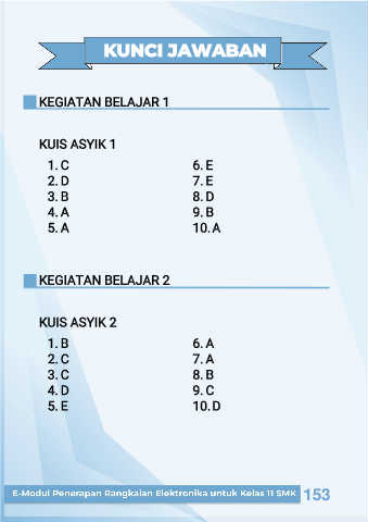 KUNCI JAWABAN KEGIATAN BELAJAR 1 KUIS ASYIK 1 1. C 6. E 2. D 7. E 3. B 8. D 4. A 9. B 5. A 10. A KEGIATAN BELAJAR 2 KUIS ASYIK 2 1. B 6. A 2. C 7. A 3. C 8. B 4. D 9. C 5. E 10. D 153