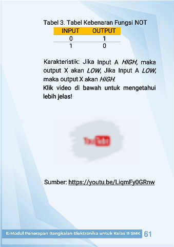Tabel 3. Tabel Kebenaran Fungsi NOT