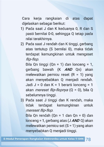 2) Pada saat J rendah dan K tinggi, gerbang