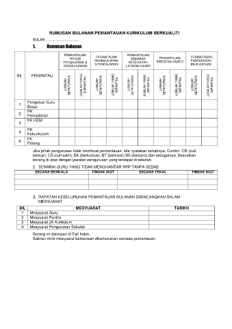 RUMUSAN BULANAN PEMANTAUAN KURIKULUM BERKUALITI