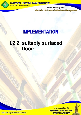 BACOOR CITY CAMPUS Second Survey Visit I.2.2. suitably surfaced floor; AREA VIII: Physical Plant and Facilities