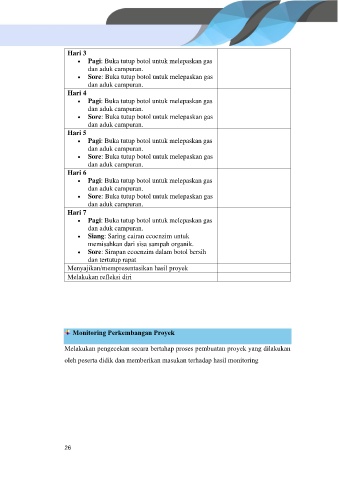 • Pagi: Buka tutup botol untuk melepaskan gas