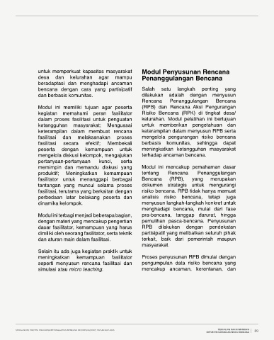 Modul ini memiliki tujuan agar peserta (RPB) dan Rencana Aksi Pengurangan