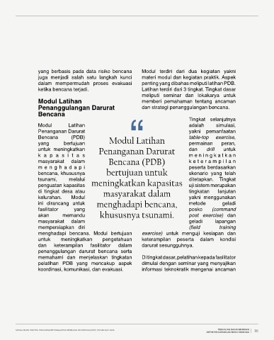 yang berbasis pada data risiko bencana Modul terdiri dari dua kegiatan yakni
