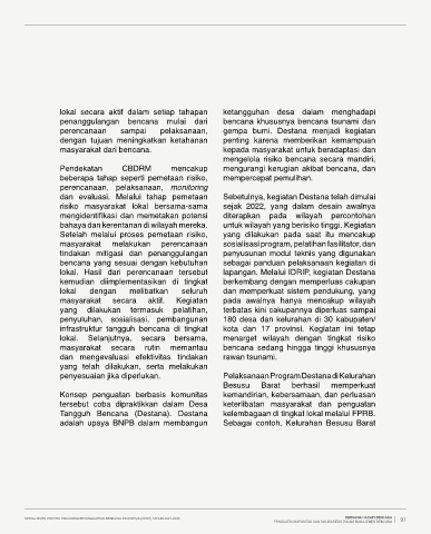 lokal. Hasil dari perencanaan tersebut lapangan. Melalui IDRIP, kegiatan Destana