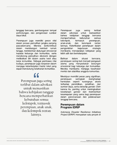 pascabencana. Mereka berkontribusi lainnya. Keterlibatan perempuan dalam