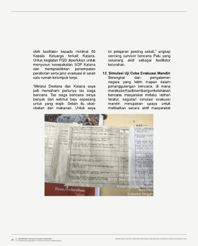 perabotan serta jalur evakuasi di salah 12. Simulasi Uji Coba Evakuasi Mandiri