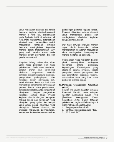 bencana. Kegiatan simulasi evakuasi Evaluasi dilakukan setelah simulasi