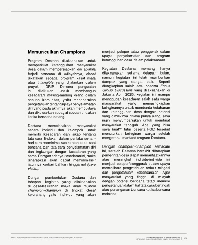 champion-champion di tingkat desa/ atau penanganan bencana ketika bencana