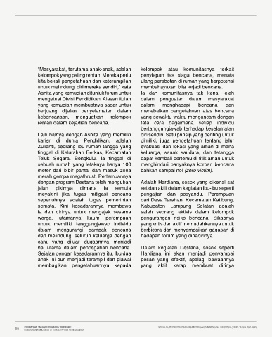 warga, utamanya kaum perempuan pengurangan risiko bencana. Sikapnya