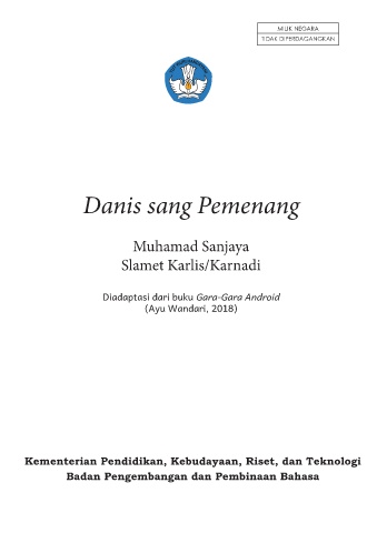 MILIK NEGARA TIDAK DIPERDAGANGKAN Danis sang Pemenang Muhamad Sanjaya Slamet Karlis/Karnadi Diadaptasi dari buku Gara-Gara Android (Ayu Wandari, 2018) Kementerian Pendidikan, Kebudayaan, Riset, dan Teknologi Badan Pengembangan dan Pembinaan Bahasa