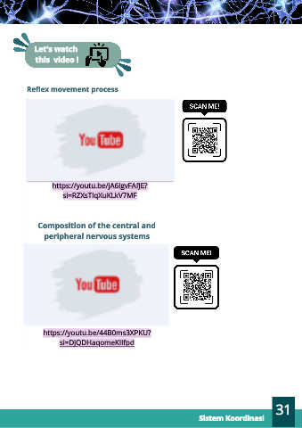 Let's watch this video ! Reflex movement process https://youtu.be/jA6IgvFAfJE? si=RZXsTIqXuKLkV7MF Composition of the central and peripheral nervous systems https://youtu.be/44B0ms3XPKU? si=DjQDHaqomeKIIfpd 31 Sistem Koordinasi
