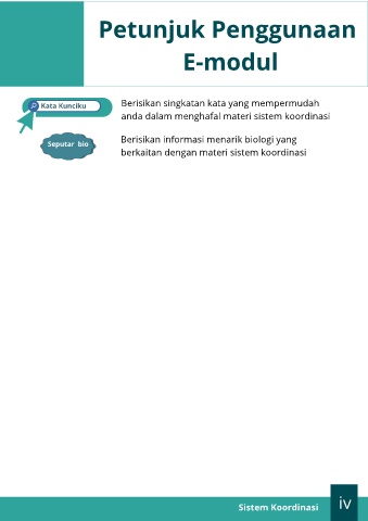 Petunjuk Penggunaan E-modul Kata Kunciku Berisikan singkatan kata yang mempermudah anda dalam menghafal materi sistem koordinasi Berisikan informasi menarik biologi yang Seputar bio berkaitan dengan materi sistem koordinasi iv Sistem Koordinasi