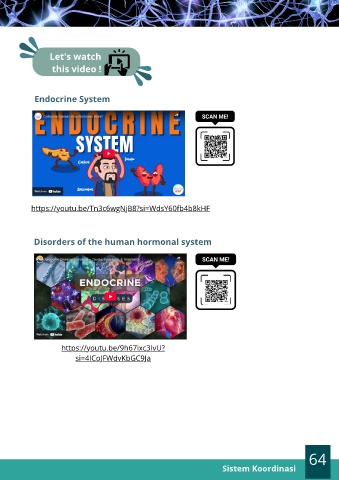 Let's watch this video ! Endocrine System https://youtu.be/Tn3c6wgNjB8?si=WdsY60fb4b8kHF Disorders of the human hormonal system https://youtu.be/9h67ixc3IvU? si=4ICoJFWdvKbGC9Ja 64 Sistem Koordinasi