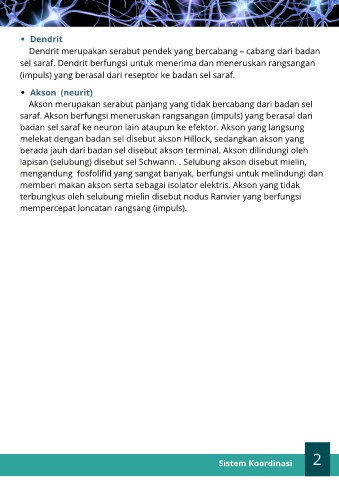 sel saraf. Dendrit berfungsi untuk menerima dan meneruskan rangsangan