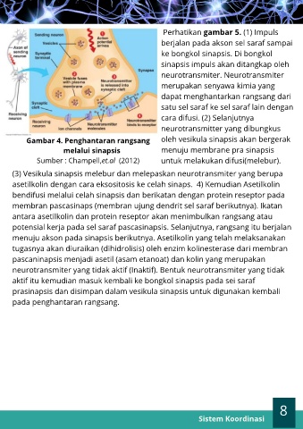 asetilkolin dengan cara eksositosis ke celah sinaps. 4) Kemudian Asetilkolin