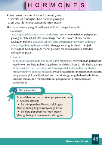 Tipe sel dan hormon di kelenjar pankreas  ada