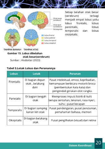Tabel 3.Letak Lobus dan Peranannya