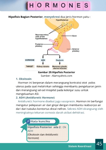 Hipofisis Bagian Posterior, menyekresi dua jenis hormon yaitu :
