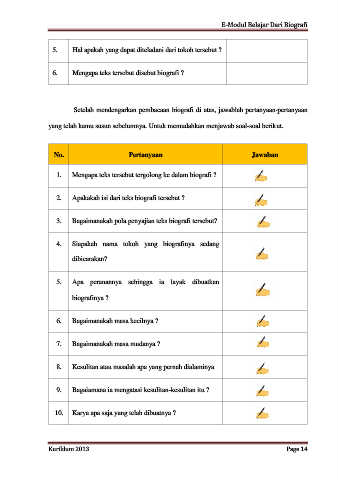 Setelah mendengarkan pembacaan biografi di atas, jawablah pertanyaan-pertanyaan