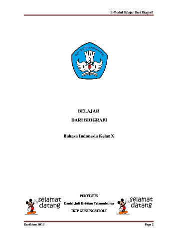 E-Modul Belajar Dari Biografi BELAJAR DARI BIOGRAFI Bahasa Indonesia Kelas X PENYUSUN Daniel Juli Kristian Telaumbanua IKIP GUNUNGSITOLI Kuriklum 2013 Page 2