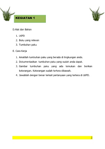 2. Dokumentasikan tumbuhan paku yang sudah anda dapat.